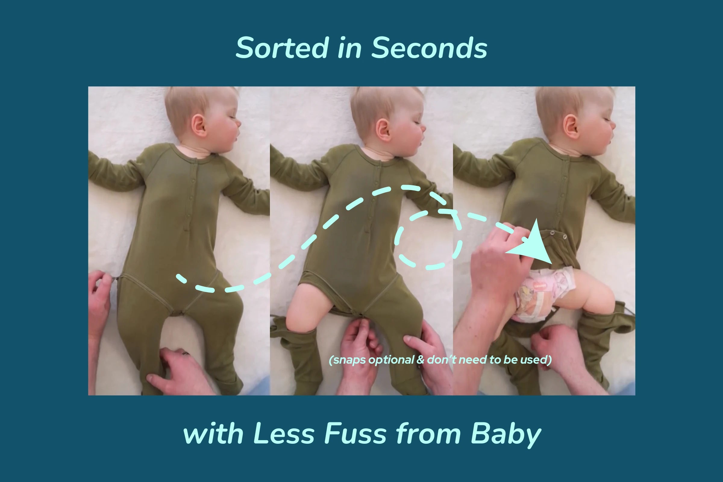 That’s why the Convertible Onesie is designed to be changed without bending baby’s legs out, keeping most of their lower half still dressed —reducing disturbance, stress, and those baby wide-eyed moments.